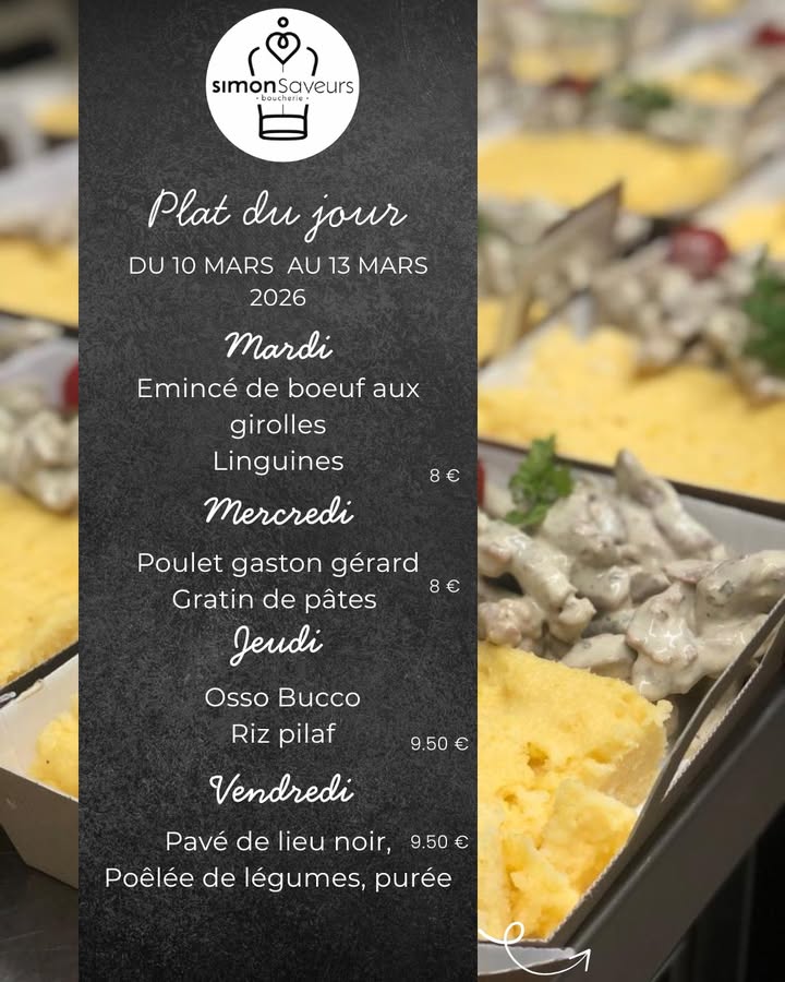 Les plats du jour de la semaine et toute l’actualité Simon Saveurs